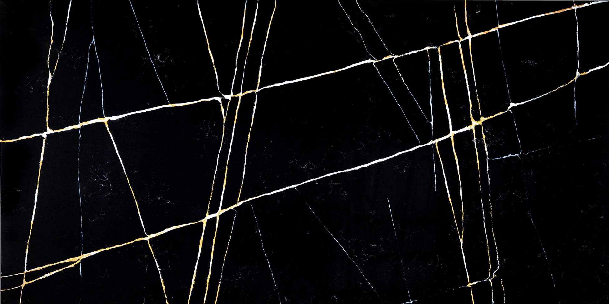 FE519 - NERO MARQUINA is a stunning black quartz with captivating white, gold, and brown veining that adds an elegant touch to any room. The veining of this quartz combines perfectly to create a unique look that is sure to draw attention. It is a great choice for those who want to add a bold and sophisticated touch to their space. Whether used for countertops, backsplashes, or other interior design applications, FE519 NERO MARQUINA is sure to make a statement.